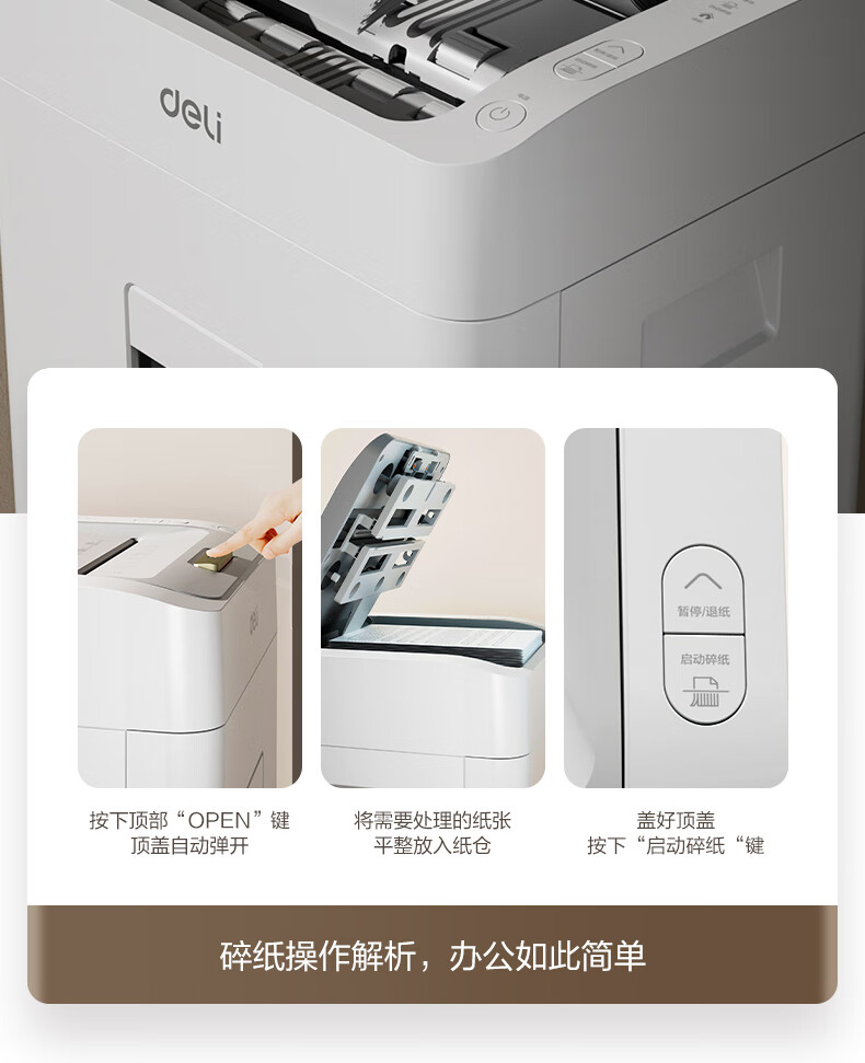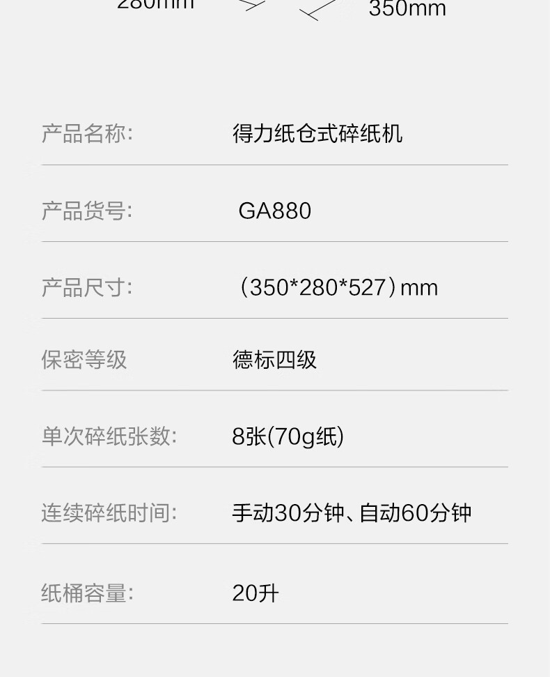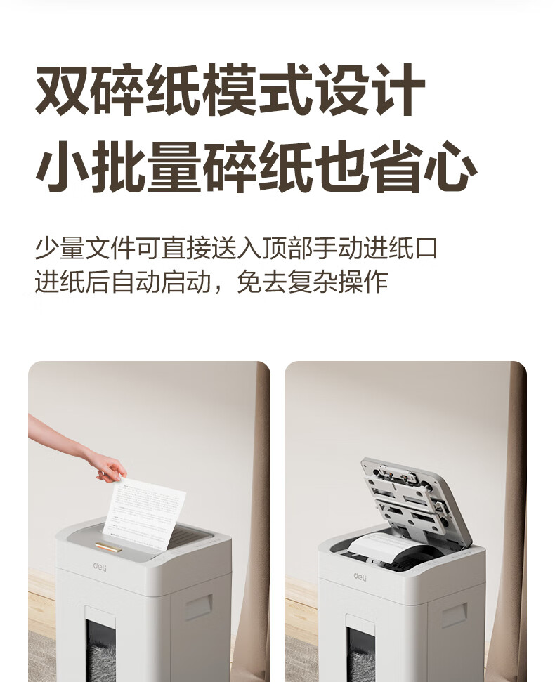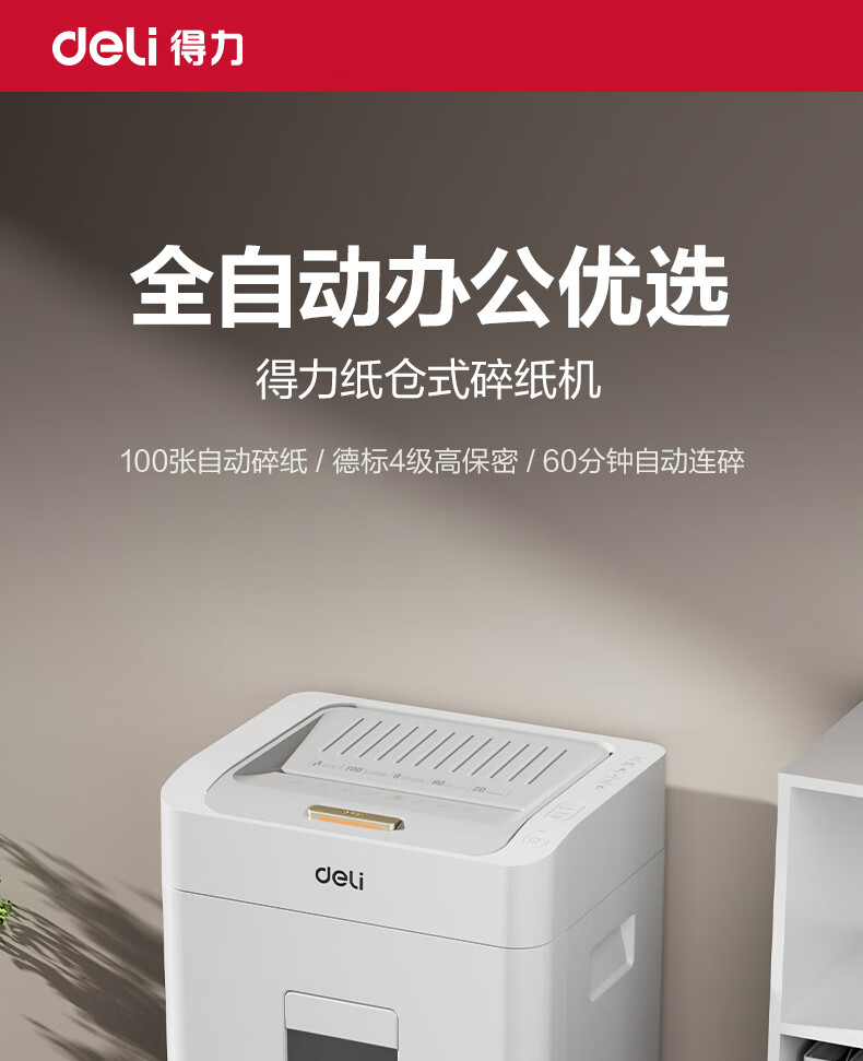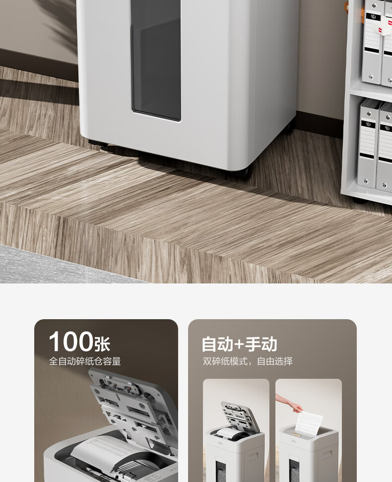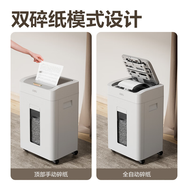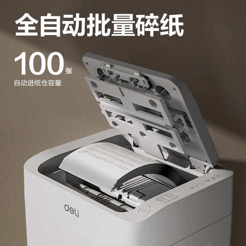得力全自动100张办公碎纸机 20L可视容量60分钟商用文件粉碎机德标4级保密 带钉碎纸单次8张碎纸GA880