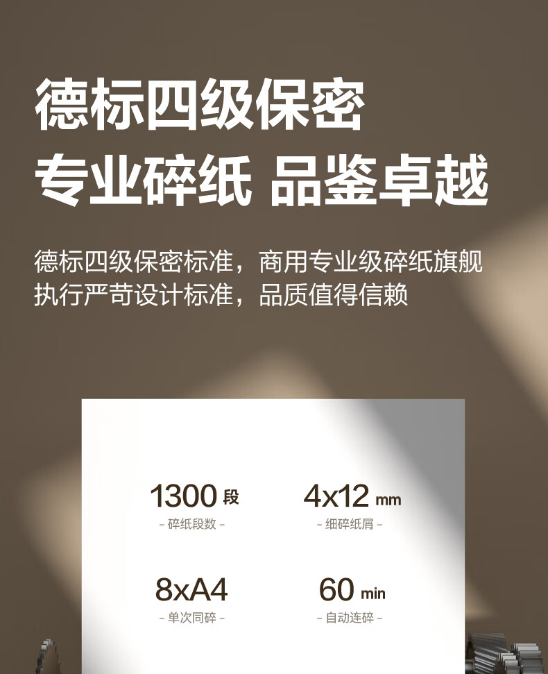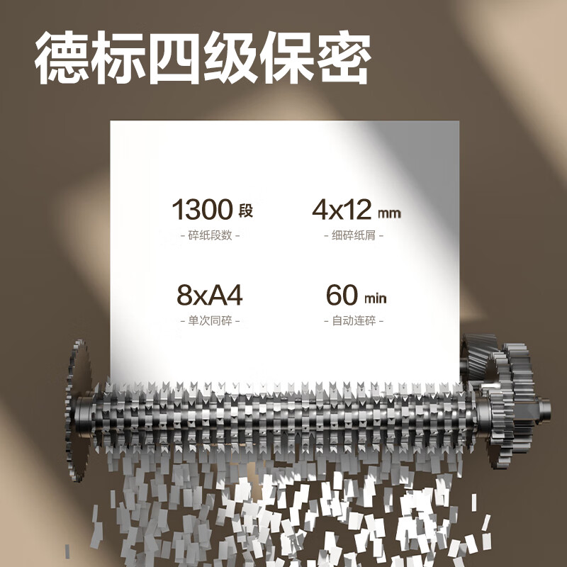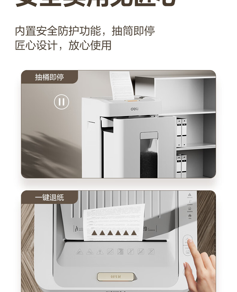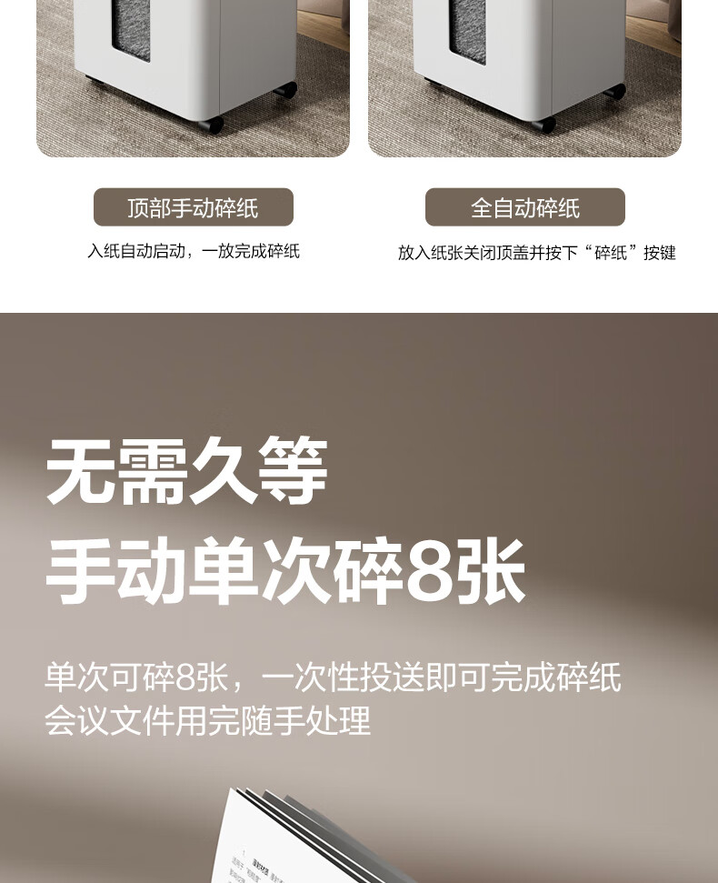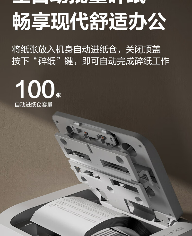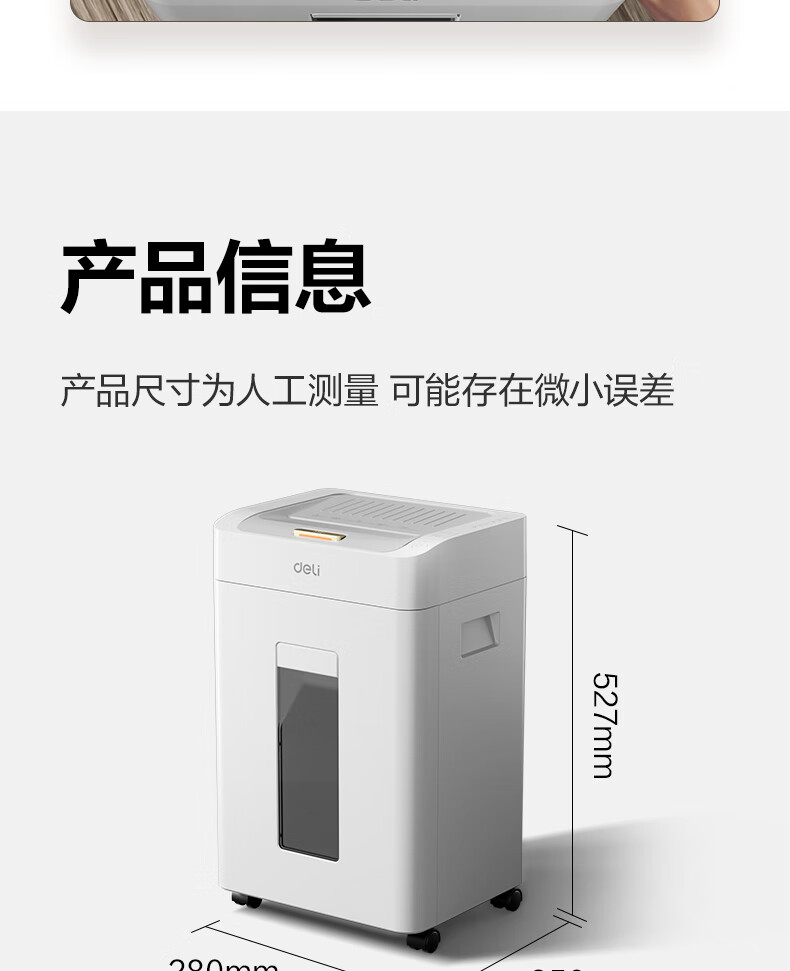 得力全自动100张办公碎纸机 20L可视容量60分钟商用文件粉碎机德标4级保密 带钉碎纸单次8张碎纸GA880