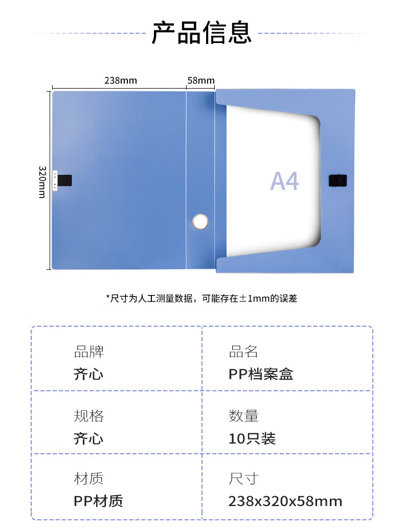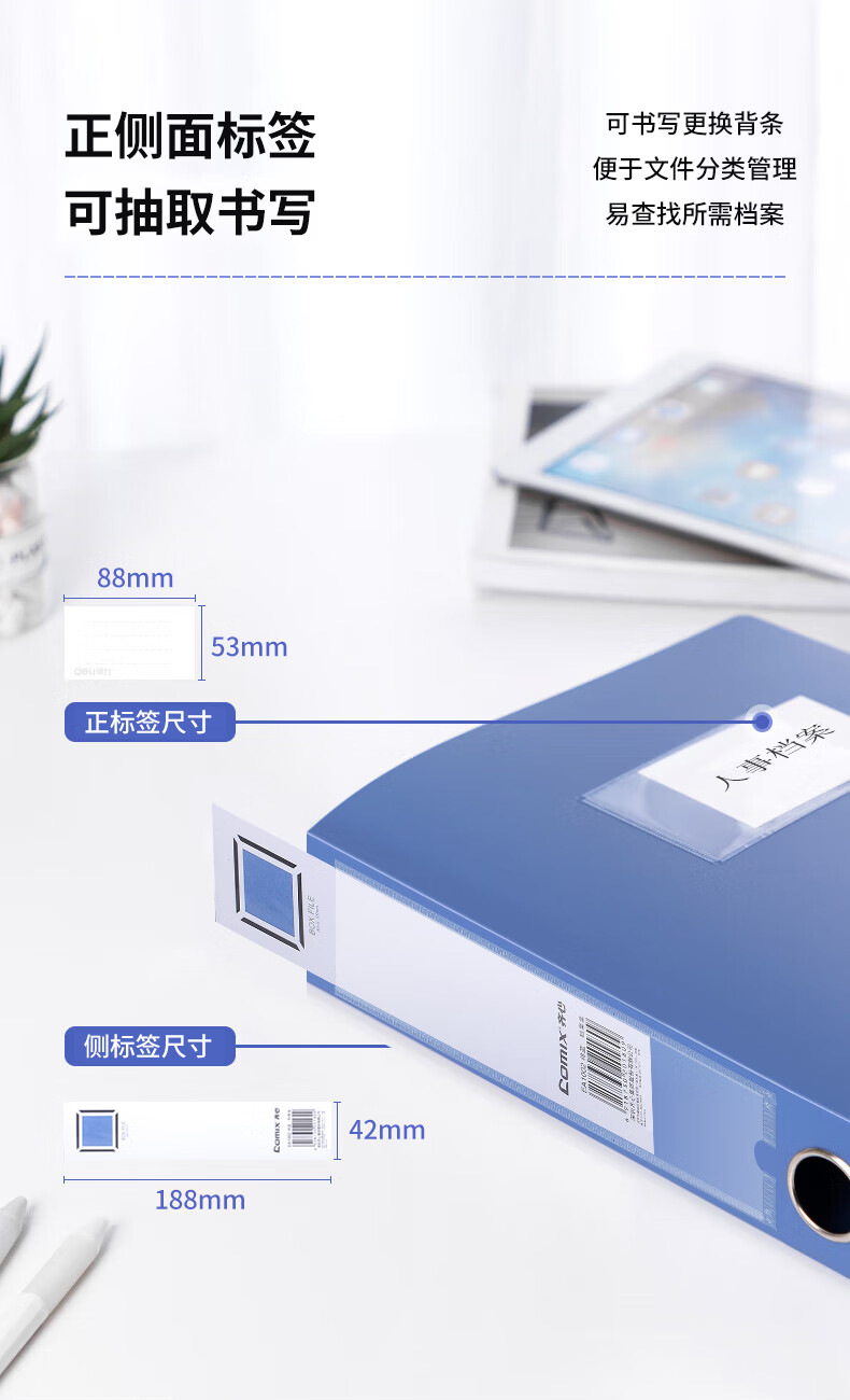 齐心(COMIX)10只A4档案盒55mm粘扣文件盒加厚塑料资料盒凭证人事城建文件收纳盒办公财会用品蓝色EA1002-10