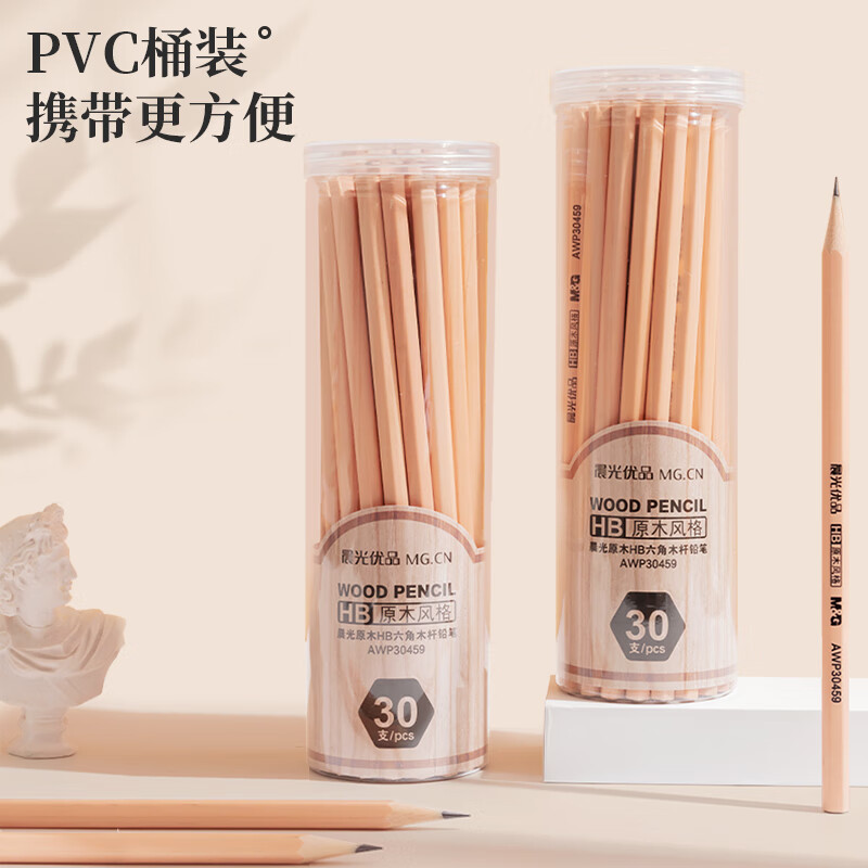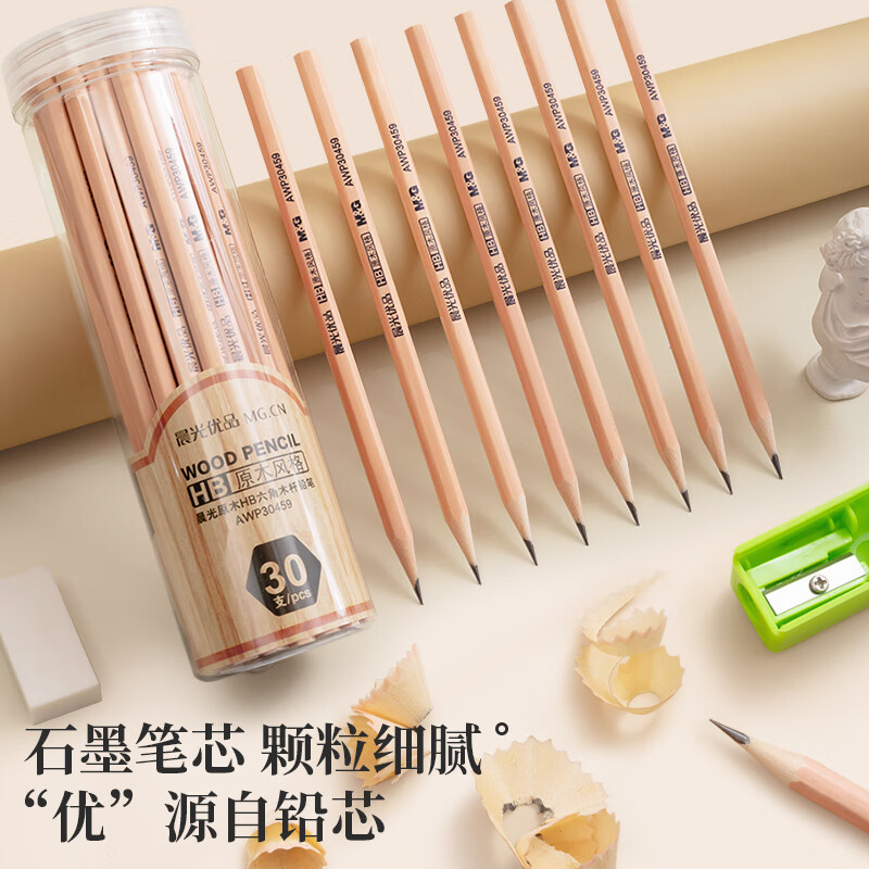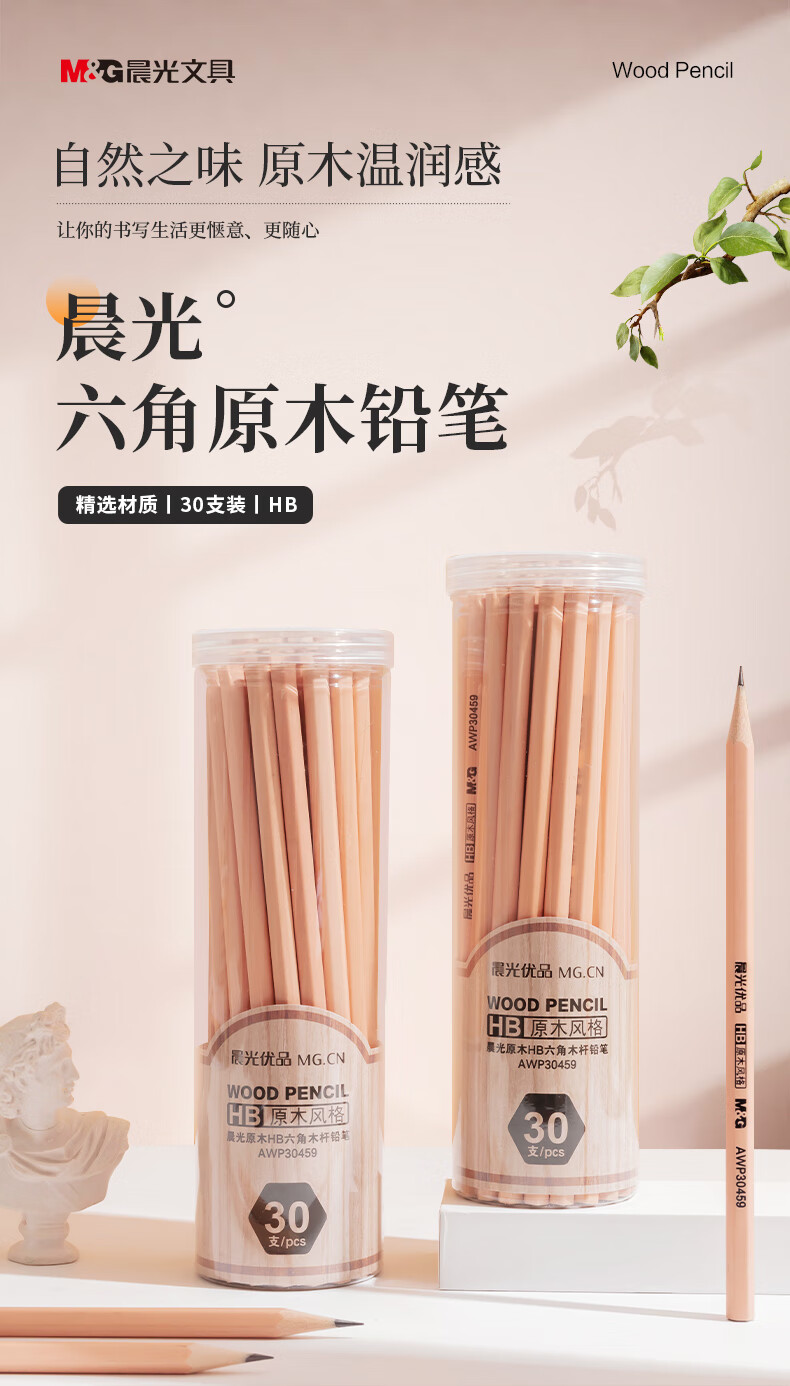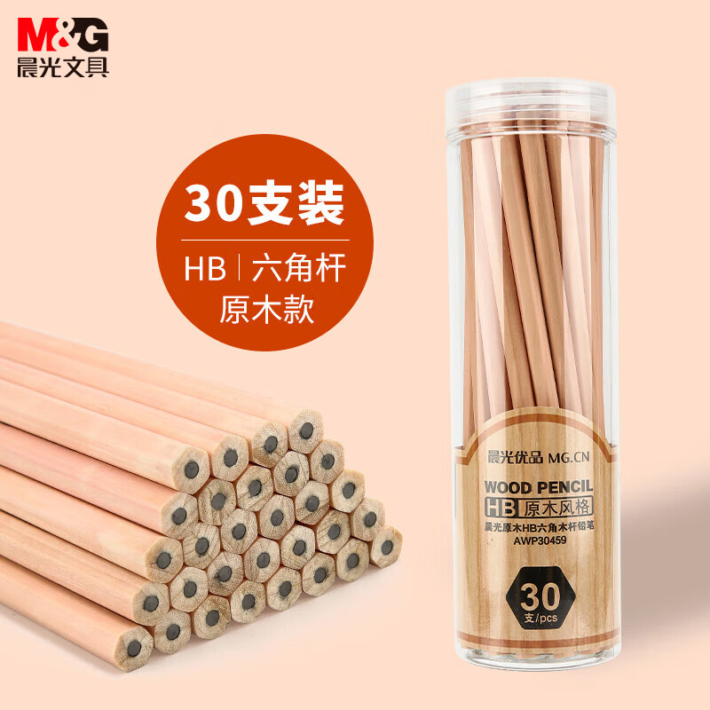 晨光(M&G)文具HB铅笔30支 原木六角木杆铅笔 学生书写美术素描绘图木质铅笔AWP30459开学