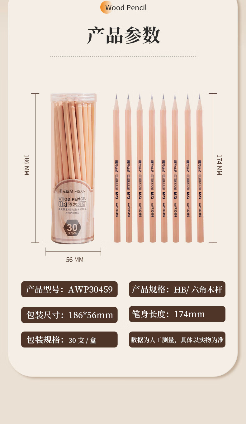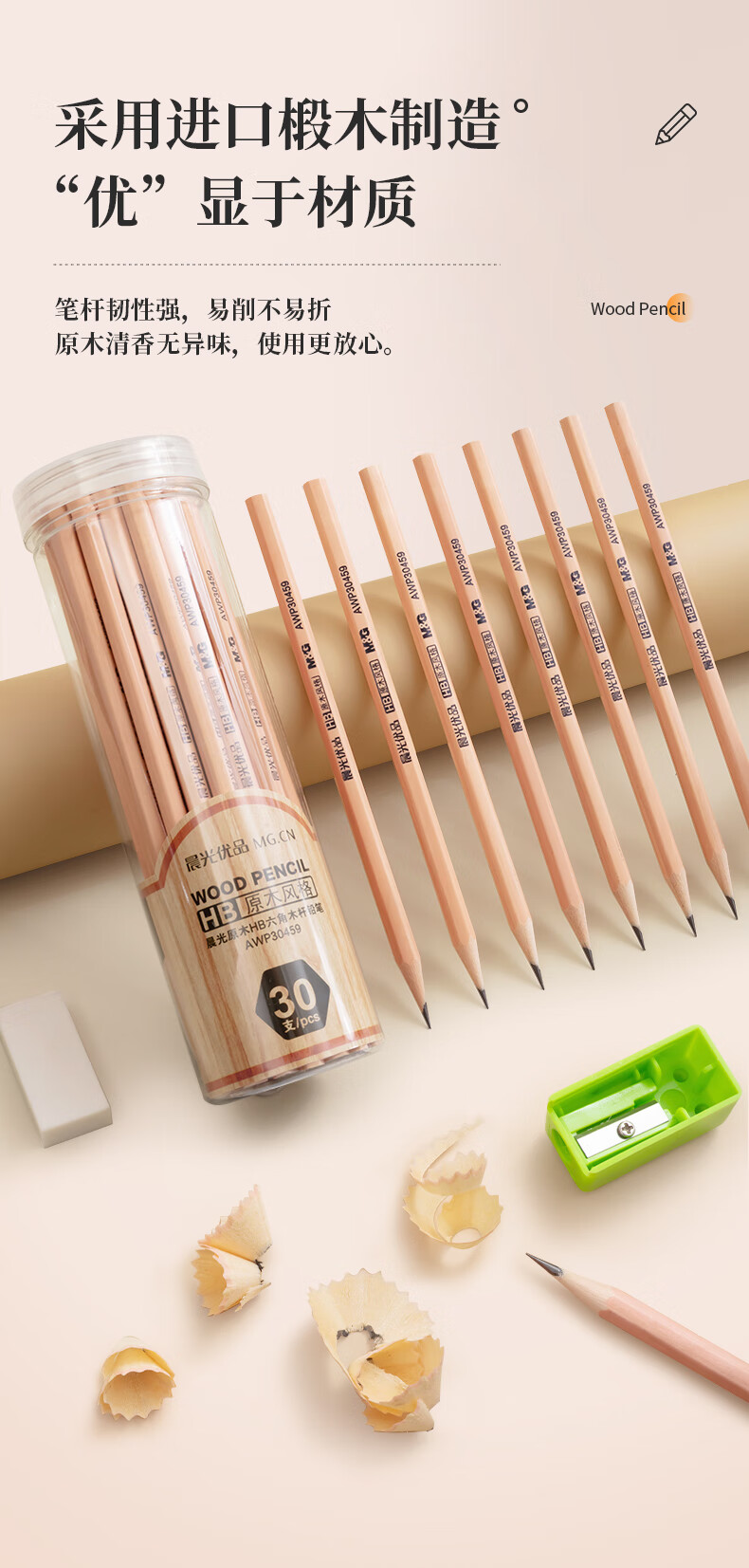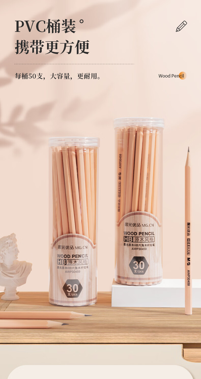 晨光(M&G)文具HB铅笔30支 原木六角木杆铅笔 学生书写美术素描绘图木质铅笔AWP30459开学